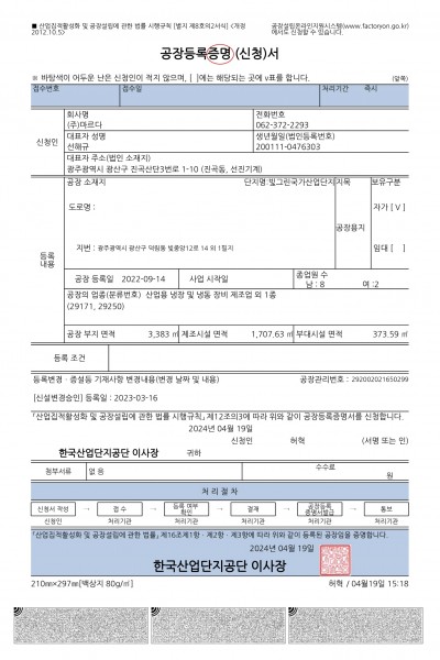 공장등록증명서