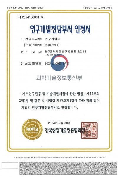 연구개발전담부서 인정서