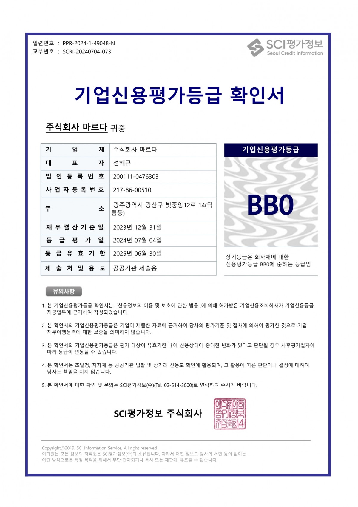 기업신용평가 등급확인서